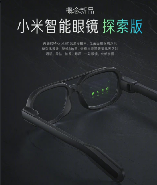 9月14日,小米官方宣布推出一款概念新品——小米智能眼镜探索版,从外观来看,这款眼镜与我们常见的眼镜差别不大。小米官方宣称“戴上它,画面跃然眼前”,简单来说,小米这款智能眼镜能够将某些特定信息以一个特殊的方式投放到佩戴者的视野当中,那么小米智能眼镜的推出是否能重新掀起智能眼镜的热潮?