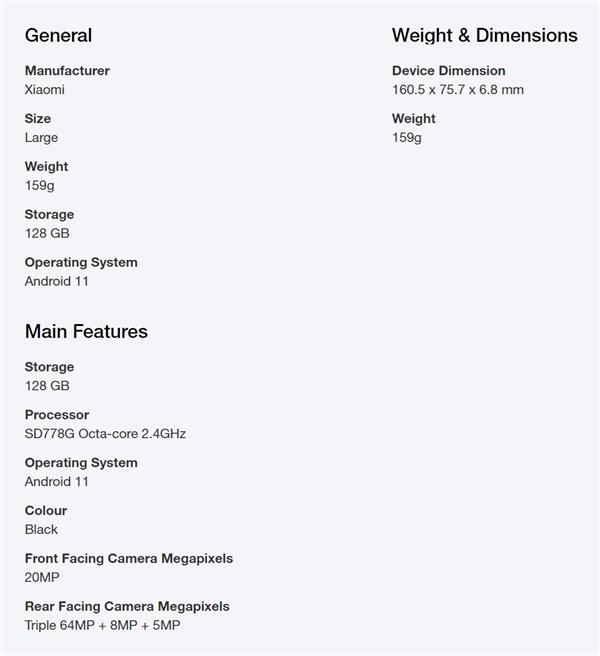 该机搭载的是高通骁龙778G处理器,这颗芯片定位略逊于小米11青春版搭载的骁龙780G芯片,这也是小米第一款骁龙778G手机。