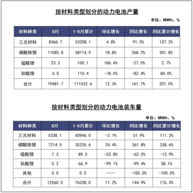 综合数据来看,磷酸铁锂电池的“大势”已成,尤其是在装车量方面,尽管三元材料电池的环比下降额度较7月份有所下降,但在磷酸铁锂电池装车量持续环比增长的情况下,两者的差距正被拉扯的越来越大。