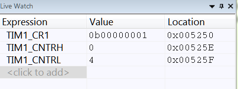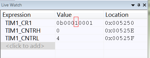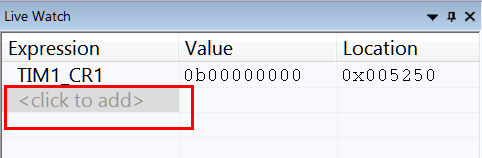 添加完成后,就会在右边Live Watch窗口中看到 TIM1_CR1寄存器了。