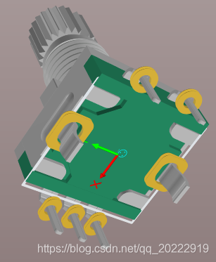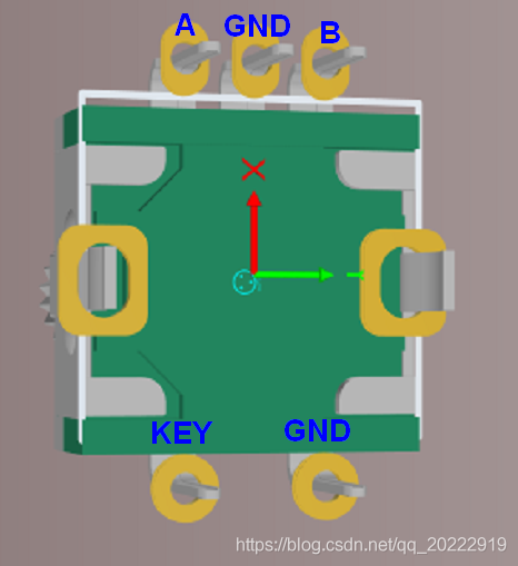 这里使用的是带开关功能的,所以有5个引脚,如果不带开关的话,就只有3个引脚。编码器左右两个比较大的引脚只是启固定作用的,是不带任何功能的。