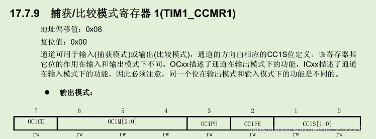 首先看TIM1_CCMR1寄存器