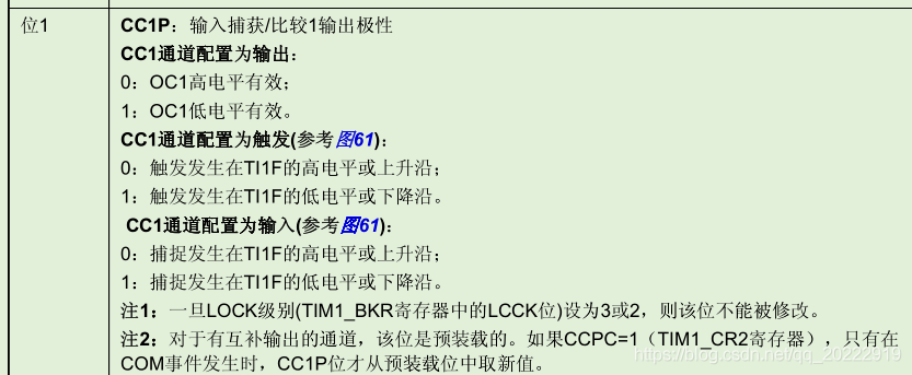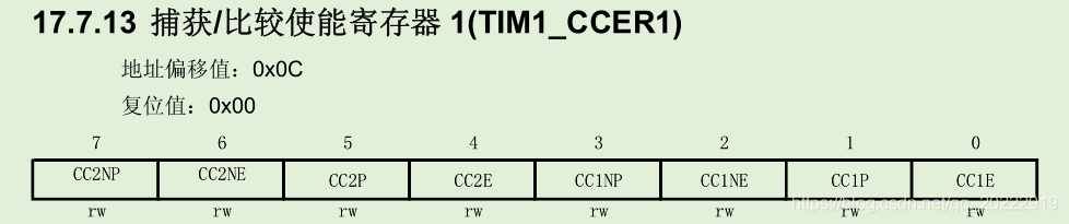 接下来设置TIM1_CCER1寄存器