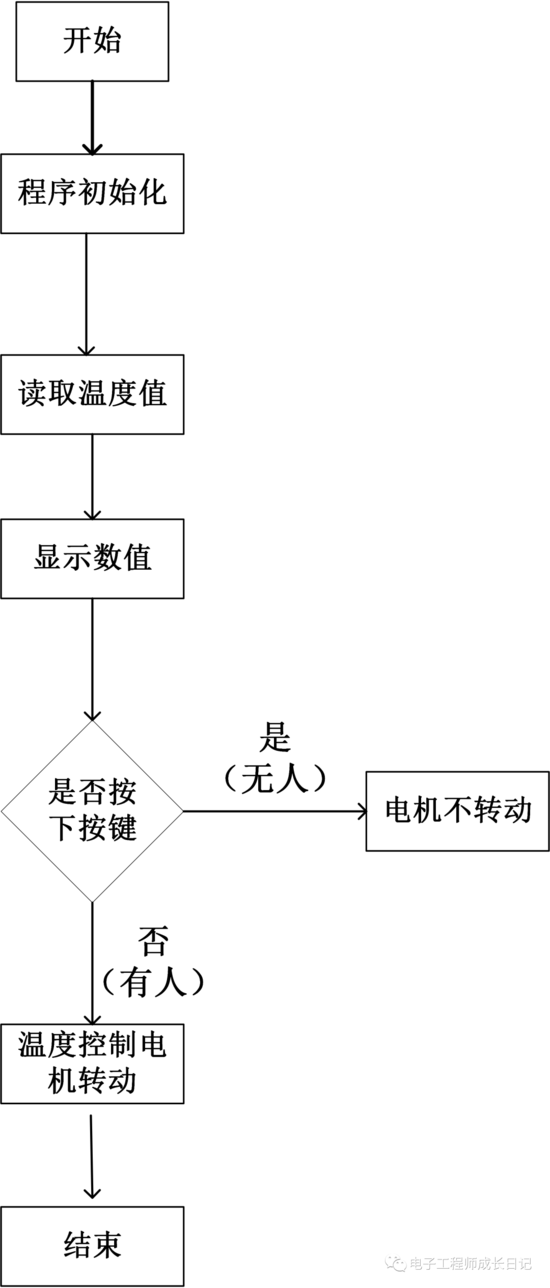 (3)有人情况下,实现温度对风扇转速的调整,温度越低,风扇转速越慢;温度越高,风扇转速越快。