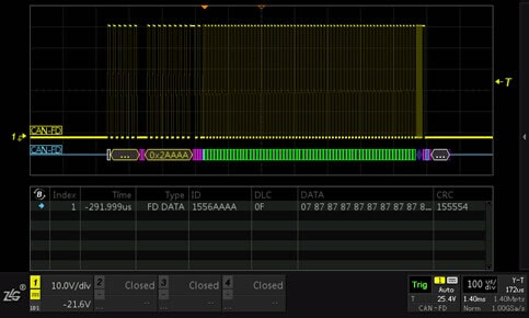 之前在ZDS2022示波器中啊,与您分享过对CAN协议的触发与解码,您有福了,在4通道的ZDS2024 Plus示波器中,不仅为您标配了24种协议解码,而且还为您免费提供了CAN FD协议! 多么真诚的服务!