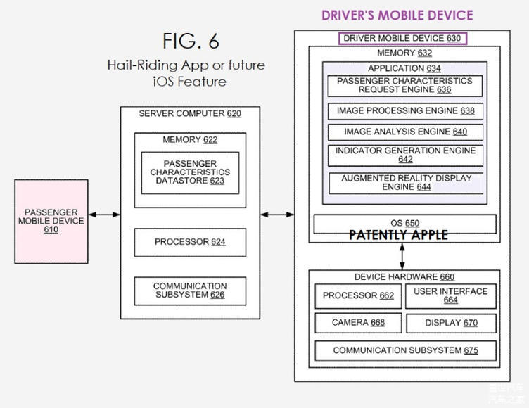 苹果专利图6是一个框图,描述了帮助识别乘客的增强现实系统。
