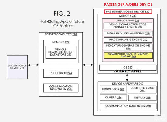 苹果专利图2是一个框图,描述了一个增强现实系统,可帮助识别一辆到达目的地的车辆。