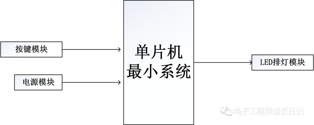 系统由STC89C51/52单片机+按键模块+LED灯模块+电源构成。