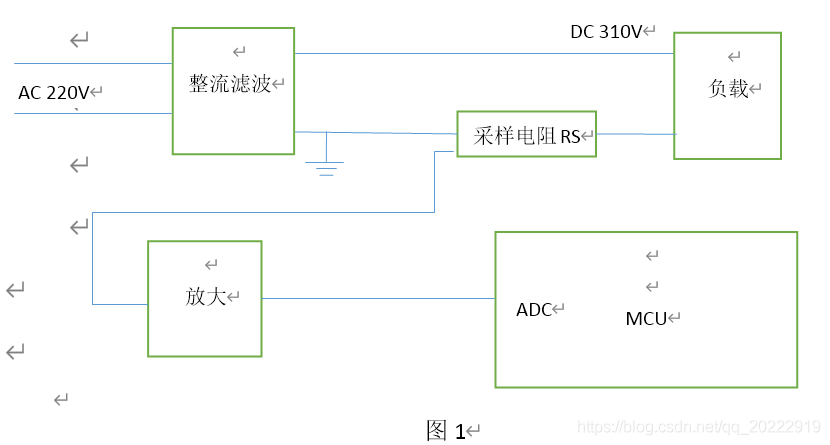 交流220V通过全桥整流滤波后变为直流310V,直流310V给后端负载供电,采样电阻Rs串联在直流回路的地线中。
