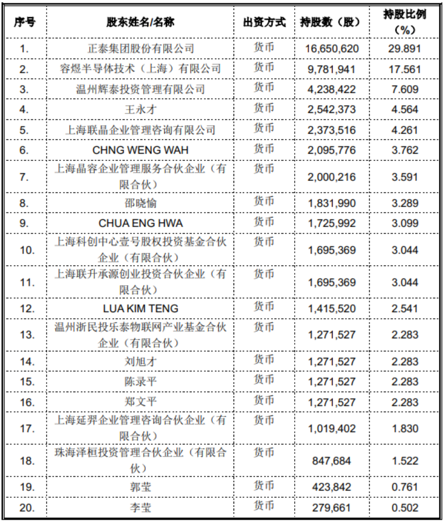 除控股股东正泰集团以外,其他持有公司5%以上股份的股东包括容煜半导体技术(上海)有限公司和温州辉泰投资管理有限公司,持有公司股份的比例分别为17.561%、7.609%。