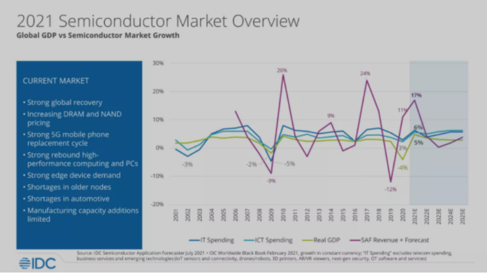 2021年09月20日 | IDC:2021年半导体市场将增长17.3%,2023年或出现产能过剩