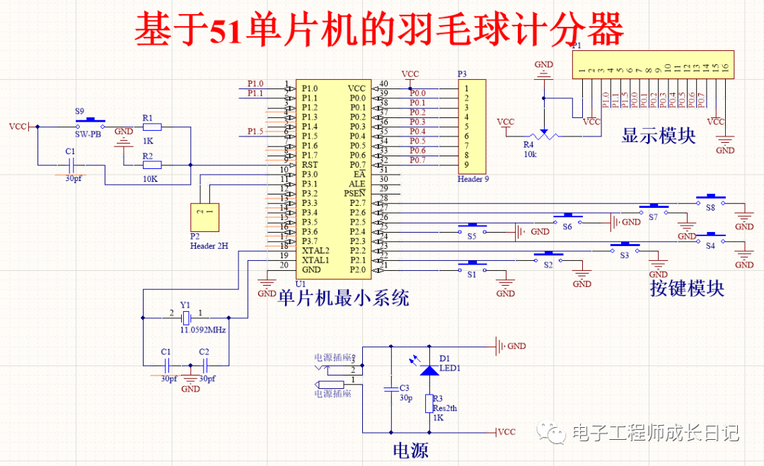 硬件部分由电源模块、按键模块、显示模块构成: