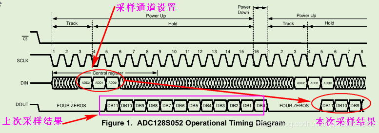 当发送通道地址后,ADC会紧跟着输出一个转换结果,但是这个转换结果不是当前设置通道的值,而是上一个通道的值。当前通道的值在下一次设置通道地址的时候才会输出,也就是说通道设置和采样结果输出,要延迟一拍。那程序中刚才出现的采样结果好像错位了一个通道,是不是也是这个原因引起的?
