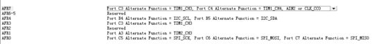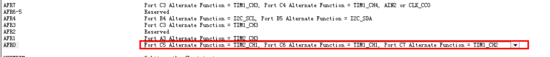 按照同样的方法设置AFR0选项,将PC6和PC7设置为定时器功能。