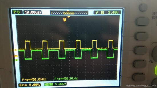 死区时间设置比较小的时候,输出的波形,看起来基本对称了。