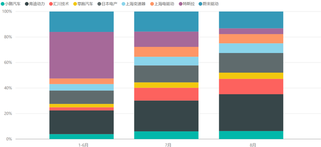 如果我进一步进行分解,我们可以看到以特斯拉、蔚来、上汽、小鹏甚至是零跑为代表的整车企业,在三合一市场占了很高的市占率。