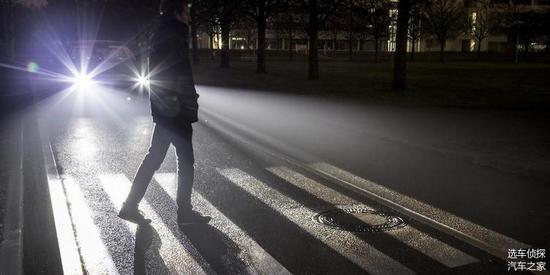 场景3:如果你晚上开车,前方突然出现行人,当进入预设的危险区域,车辆检测到后,道路上会出现一个标志他们的箭头,提醒你哪个方向有行人,注意行驶。