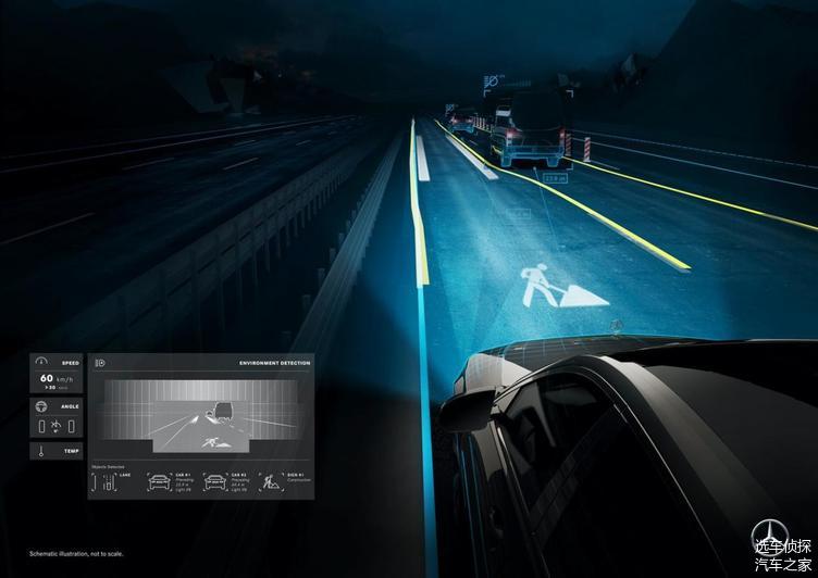 此外,大灯还可以投射低抓地力表面符号、施工现场符号、追尾碰撞符号、车道保持符号、盲点符号和速度符号等。