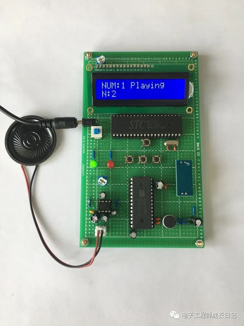 (2)可以通过按键随时录音,可以录制4段声音,并可以按键控制播放和暂停,最长可以录制8分钟;
