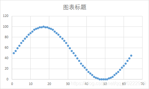 本例程中生成的64个数据是:50,54,59,64,69,73,77,81,85,88,91,94,96,97,99,99,100,99,99,97,96,94,91,88,85,81,77,73,69,64,59,54,50,45,40,35,30,26,22,18,14,11,8,5,3,2,0,0,0,0,0,2,3,5,8,11,14,18,22,26,30,35,40,45