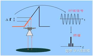 FMCW雷达用24GHZ作为测量基频(载频),2GHZ为调节频宽, 整个扫描时间为7ms,完成一次线性扫描,信号发射后,经过一定的时间延迟后,接受到回波信号。在线性扫频中产生的时间差,将正比例液位距离,由于有许多反射波,将所有的回波时间进行快速傅立叶(FFT)变换,将时间信号转换成有一定能量的频谱,视频谱比较高和比较陡的信号为有用信号。