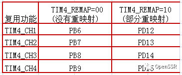 * 部分重映射时,TIM3的四个通道CH1, CH2, CH3, CH4分别对应PB4, PB5, PB0, PB1