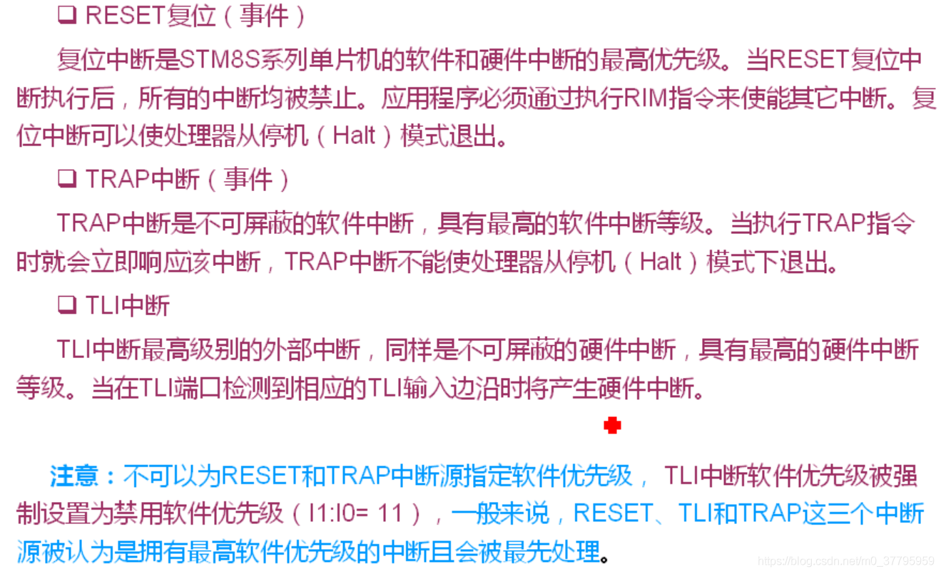 TLI :同样是不可以屏蔽的硬件中断,具有硬件的最高优先级。