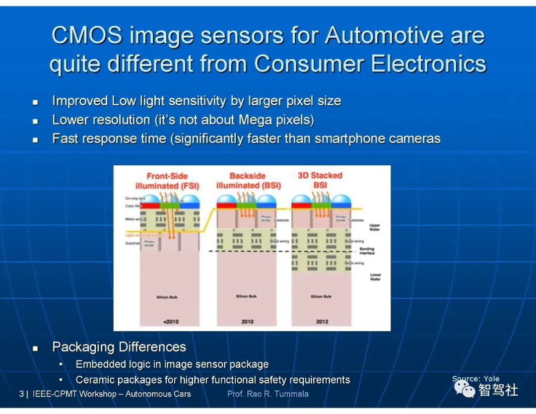 摄像头与LiDAR和RADAR不同,照相机的传感器技术和分辨率在能力上起着非常大的作用。照相机与人眼相似,容易受到恶劣天气条件和照明变化的影响。但摄像头是唯一能够捕捉纹理、颜色和对比度信息的传感器技术,而且摄像头捕捉到的高水平细节使其成为分类的领先技术。这些特点,再加上不断提高的像素分辨率和低价位,使相机传感器成为ADAS和自主系统不可或缺的和数量上的领导者。