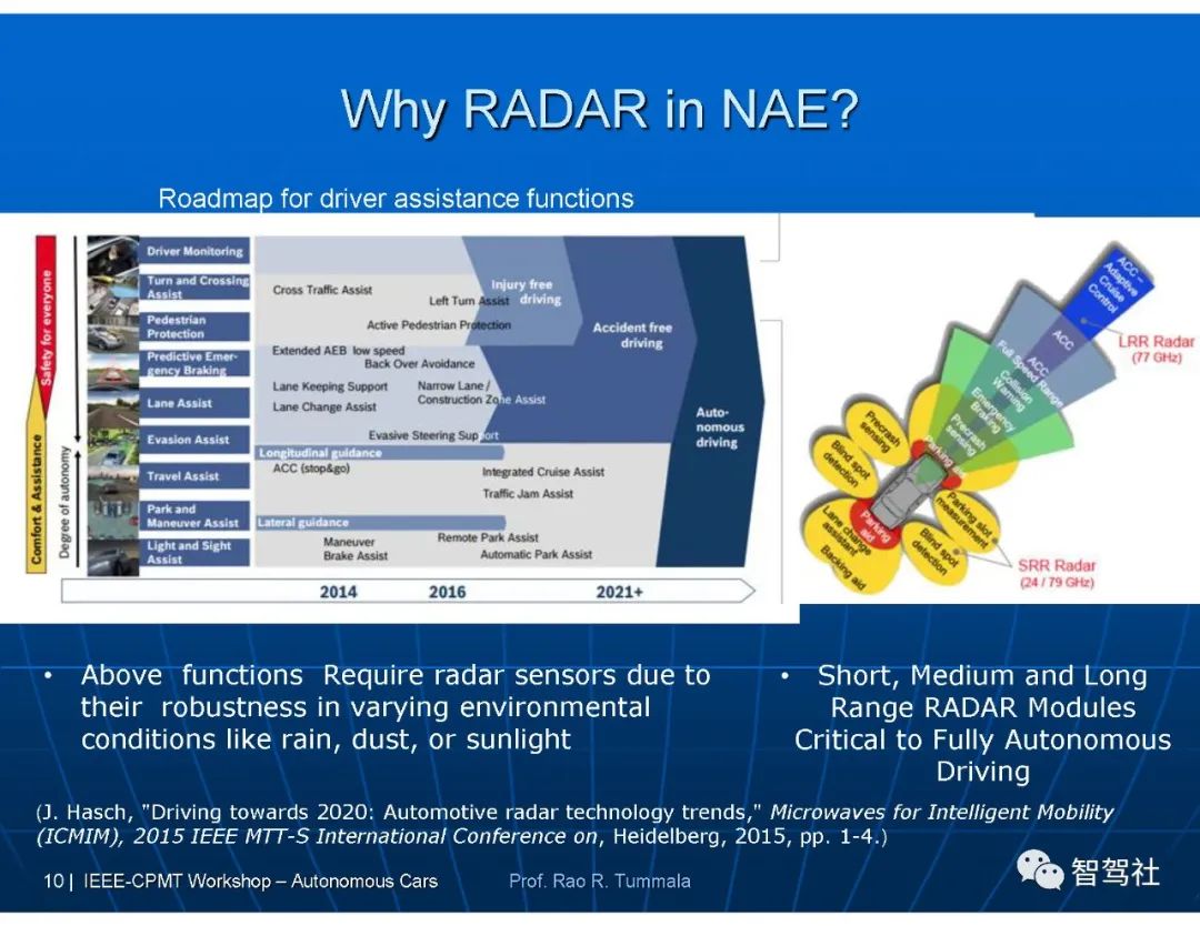 长程雷达(LRR)是自适应巡航控制(ACC)和高速公路自动紧急制动系统(AEB)中使用的传感器。目前部署的只使用长程雷达的ACC和AEB系统有局限性,可能无法对某些情况作出正确反应,如汽车在车辆前面贴近切入,对静止目标的识别。为了克服这些例子中的局限性,雷达传感器可以与车辆中的摄像头传感器配对,为检测提供额外的辅助。