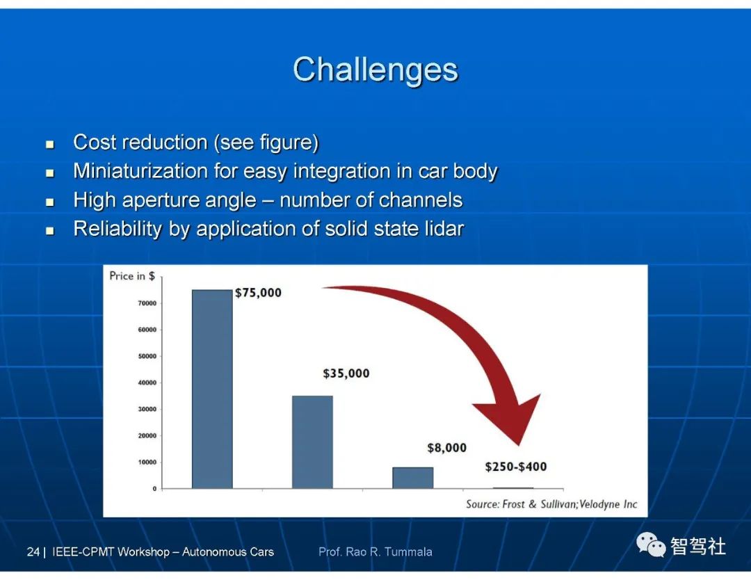 从那时起,LiDAR传感器的尺寸和成本有了很大的降低,但一些使用更广泛和公认的型号的成本仍然比雷达或相机传感器高得多,有些甚至比它们安装的车辆的成本还高。