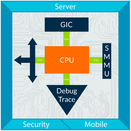arm系统一般包括:mpcore,debug and trace,smmu,GIC,AMBA bus,security扩展,
