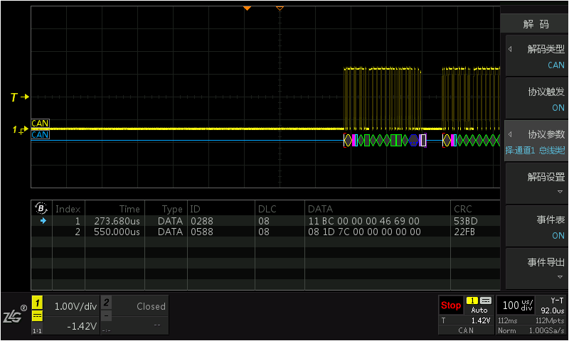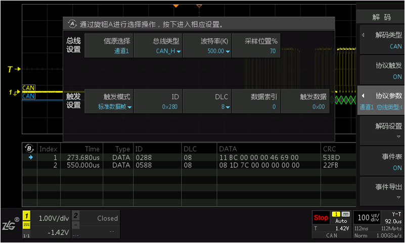 使用CAN协议触发进行ID帧过滤的触发,需要确认以下设置是否正确: