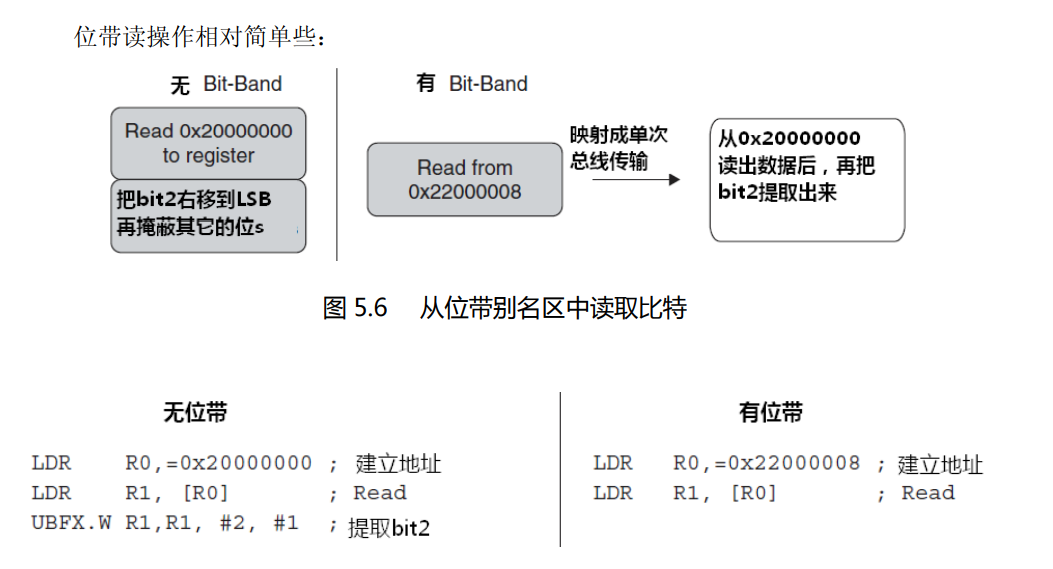 先来看一下Cortex-M3权威指南中描述的位带操作: