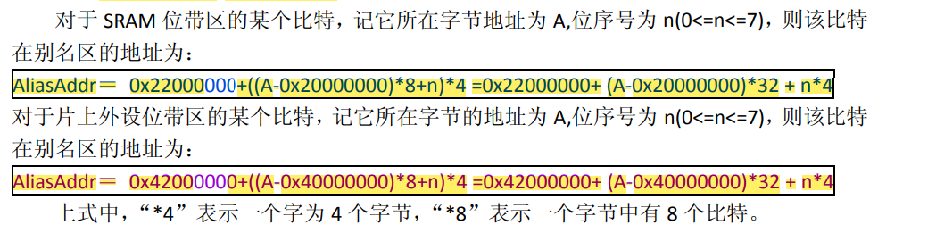 AliasAddr = 0x22000000+((A-0x20000000)*8+n)*4= 0x22000000+(A-0x20000000)32+n4