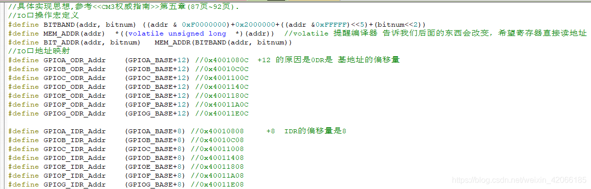一般位带的使用 我们都是对GPIO进行操作,所以我们还要将GPIO对应其来加入下面程序