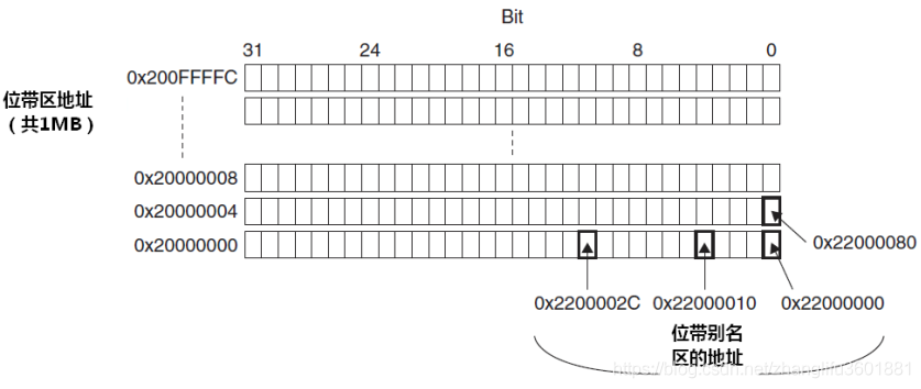 CM3 使用如下术语来表示位带存储的相关地址
