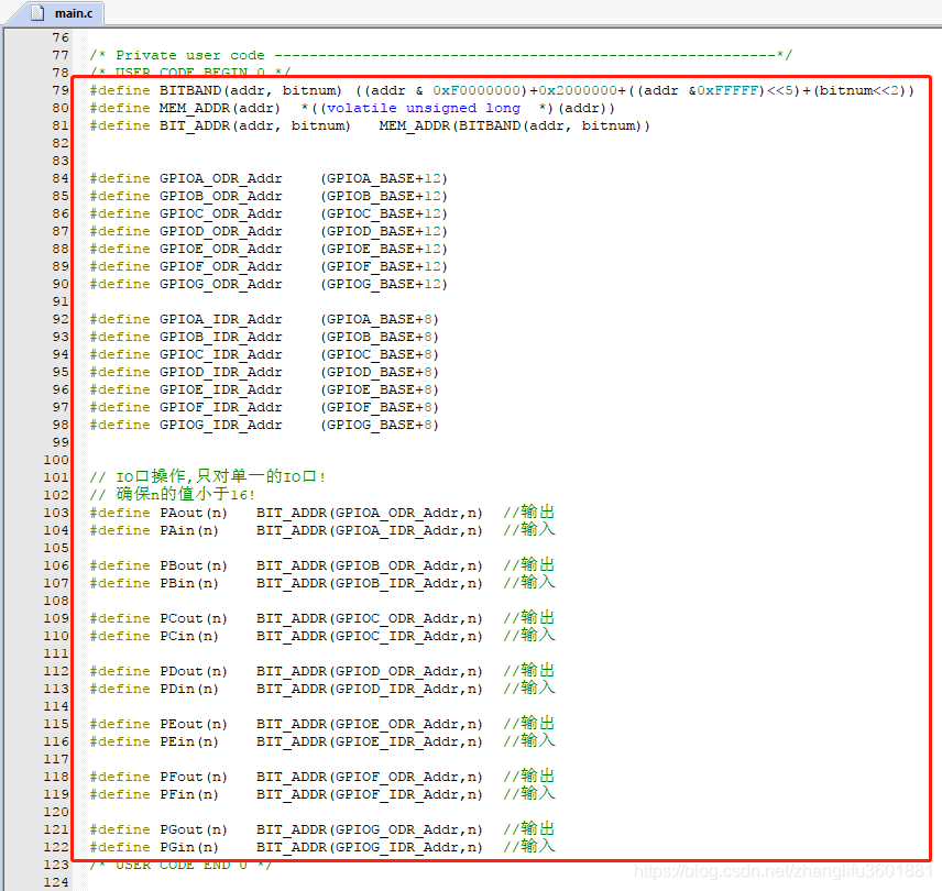 本节以stm32f103芯片为例,关于位带操作的基本说明/举例(可参看《ARM Cortex-M3权为指南》):