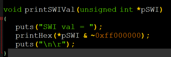 上图是swi异常的打印函数,为什么取地址解引用之后,还要对0xff000000取反相与呢?