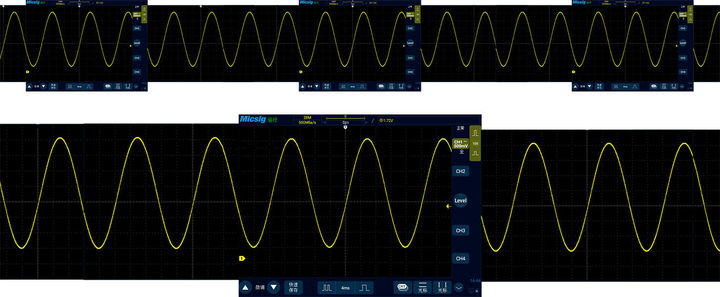 如果每次显示的波形都不一样,并且屏幕每次出现过的波形都不消失,那么我们看示波器的波形就会叠加变成这样。但是如果每次显示的波形都几乎一样,即使屏幕每次出现过的波形都不消失,我们看示波器的波形依然是稳定的正弦波。