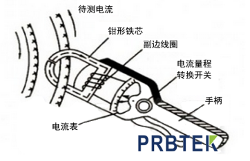 钳形交流电流表实质上是由一只电流互感器和一只整流系仪表所组成,被测量的载流导线相当于电流互感器的原绕组,在铁芯上的是电流互感器的副边绕组,副边绕组与整流系仪表接通。根据电流互感器原、副边绕组间一定的变化比例关系,整流系仪表的便可以显示出被测量线路的电流值。