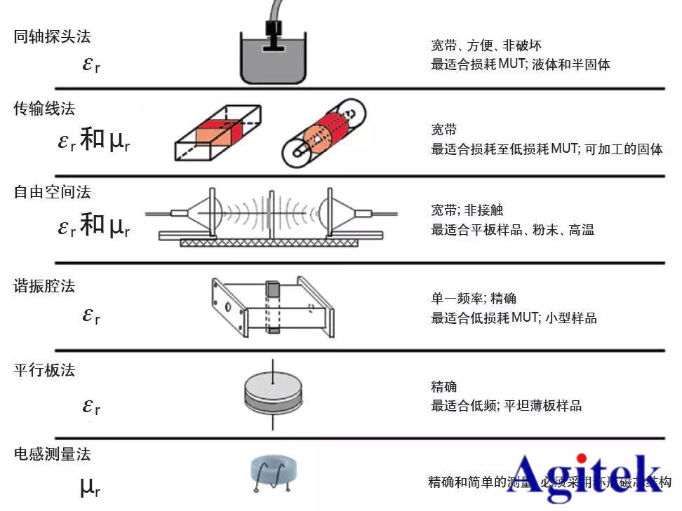 矢量网络分析仪能够覆盖最高1.1THz的频率范围,配合各种夹具也有很多的测试方法,如:同轴探头法、平行板法、同轴/波导传输线法、自由空间法和谐振腔法等,安泰测试简单总结了以下六个测试方案的特点: