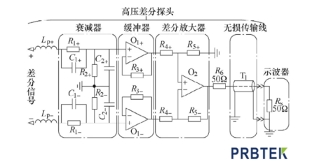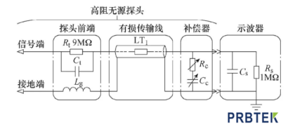 随着宽禁带半导体器件的发展,电力电子器件的开关速度越来越快,工作电压逐渐升高,也使电压探头的性能对电力电子器件暂态电压测量结果的影响程度增大。下面PRBTEK为您分享典型示波器电压探头电路原理: