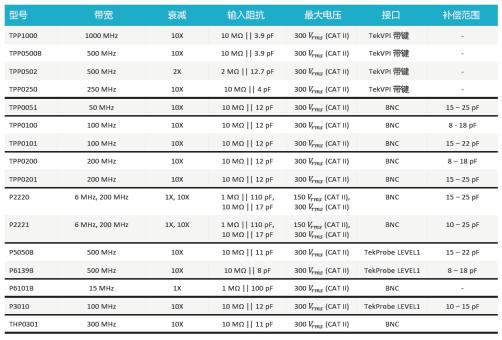 泰克新型无源探头更是其中佼佼者,针对泰克无源单端探头选型,带宽高可高达1GHZ,输入电容方面则是低达3.9pF,大限度的降低了探头的负载效应,为精准测量各类电压信号保驾护航。