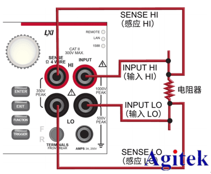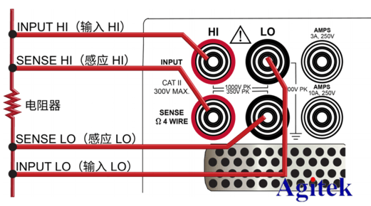 图:4线电阻测量的后面板连接示意图