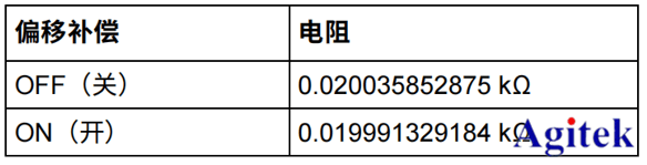 从下表我们可以得到使用和不使用偏移补偿功能两种情况下的测试结果。因此,在低电平电阻测量中,建议开启偏移补偿功能。
