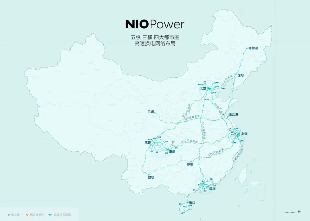 与此同时,发布了“五纵三横四大都市圈”高速换电网络计划,在国内多条高速“要道”上全程布设换电站,并计划在2022年春节前完成。