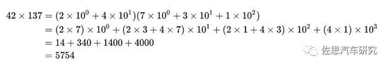 上面就是一个卷积,第二个等号右边每个括号里的系数构成的序列 (14,34,14,4),实际上就是序列 (2,4) 和 (7,3,1) 的卷积。所谓AI算力就是每秒执行多少万亿次指令,这些指令通常就是MAC运算的指令。