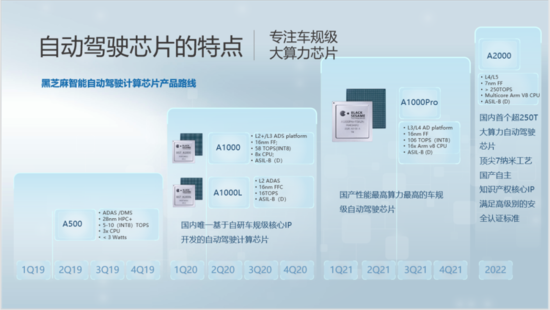 2019年8月:黑芝麻智能第一颗车规级智能驾驶芯片华山一号A500在国内首发,算力达5-10TOPS