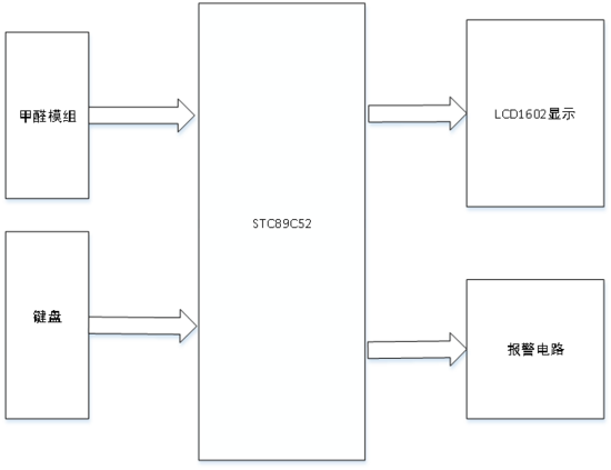 (2)通过按键可设置报警最小浓度。当实际测出的甲醛浓度大于设定的浓度时就会使得蜂鸣器、LED灯报警;