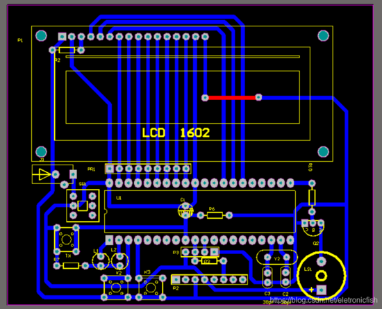 (4)LCD1602液晶显示所测的距离已经设置的报警阈值,简单明了;